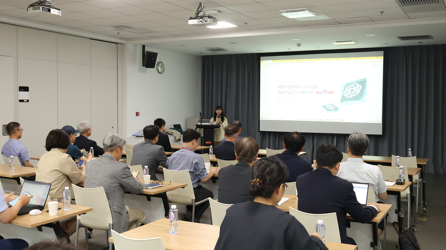 培训第一板块聚焦 “AI 实务应用案例”。讲师从生成式 AI 概念入手,详细讲解 Chat GPT 的基础使用方法,重点强调提示词管理(Prompt Managing)的重要性及 KOTRA 在该领域的实践经验;通过案例演示提示词工程如何优化 AI 输出,分享 Chat GPT 在提升办公效率中的具体应用场景,并对中国 AI 发展现状进行分析总结。